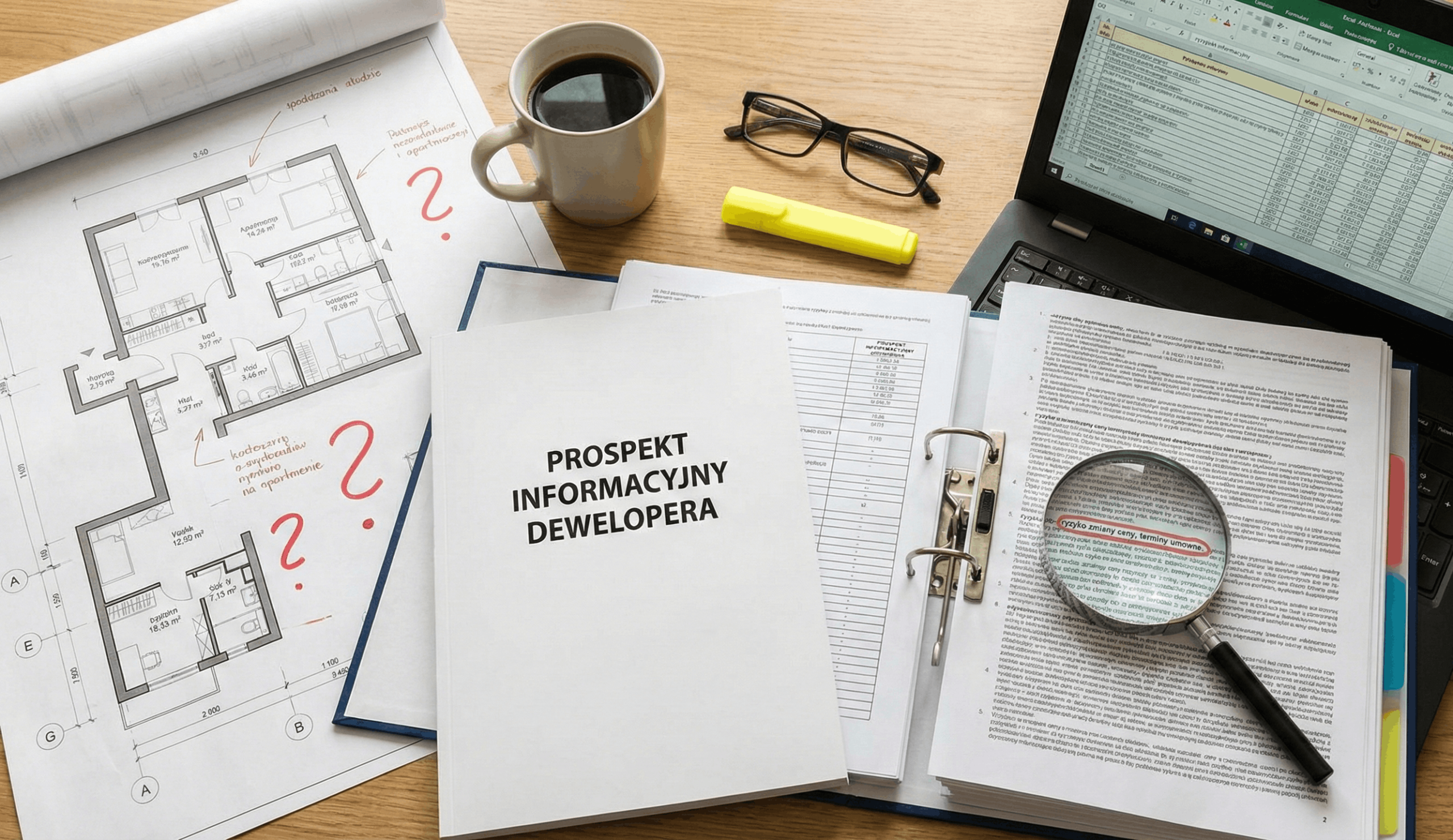 Prospekt informacyjny to prawnie wiążący dokument, który szczegółowo opisuje stan prawny i techniczny inwestycji oraz Twojego przyszłego mieszkania, stanowiąc integralną część umowy deweloperskiej/zobowiązującej (w formie aktu notarialnego). Analizując go, należy zwrócić szczególną uwagę na planowane inwestycje w promieniu kilometra, standard wykończenia lokalu oraz harmonogram prac i płatności, ponieważ te zapisy chronią Cię przed ukrytymi kosztami.